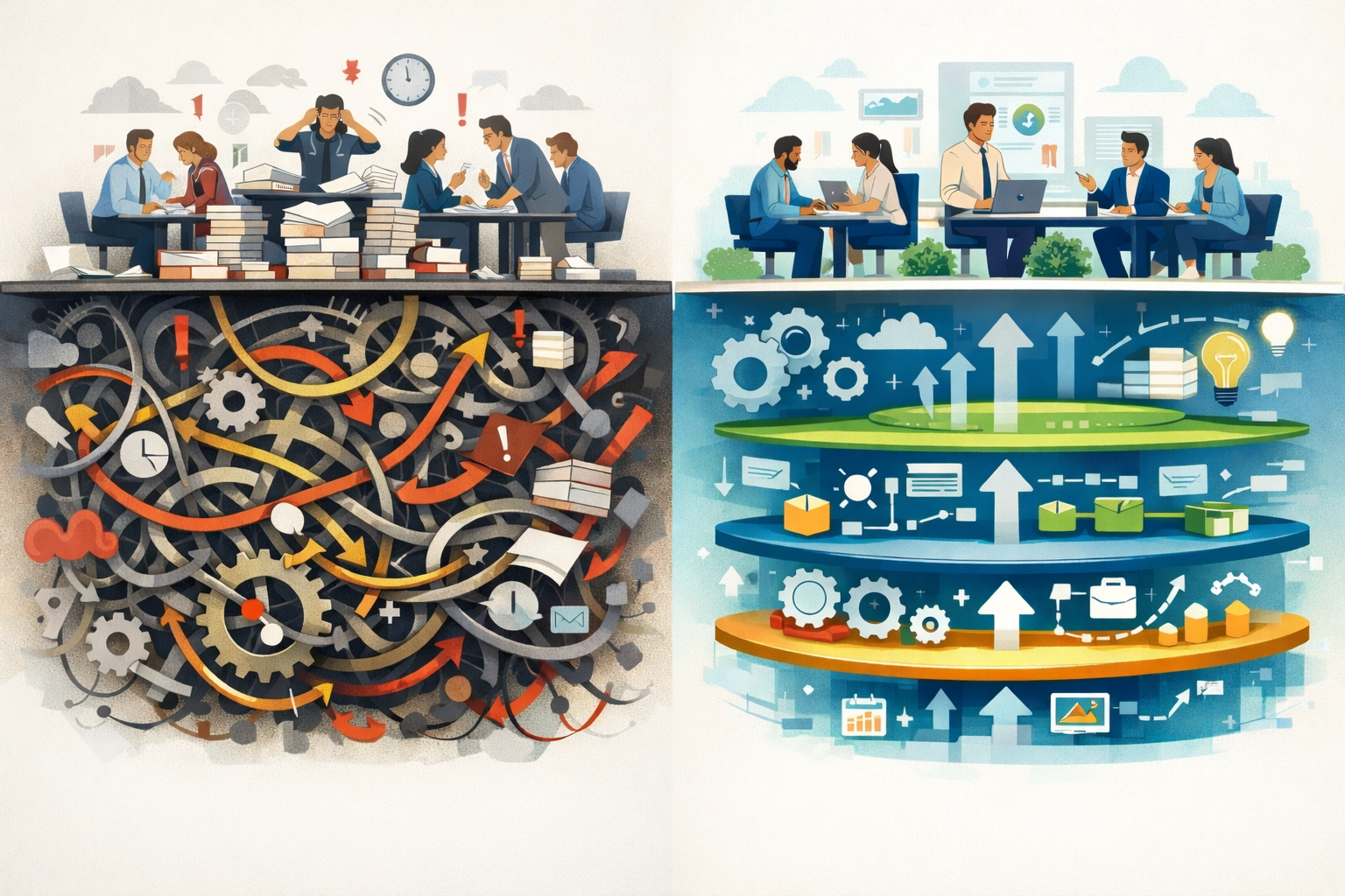 Sau vài năm, tốc độ xử lý giảm rõ rệt. Một yêu cầu khách hàng đi qua nhiều bộ phận, mỗi bộ phận chỉ chịu trách nhiệm một phần nhỏ. Khi có vấn đề, không ai thật sự “sở hữu” kết quả cuối cùng. Ban lãnh đạo ban đầu cho rằng vấn đề nằm ở năng lực quản lý trung gian.