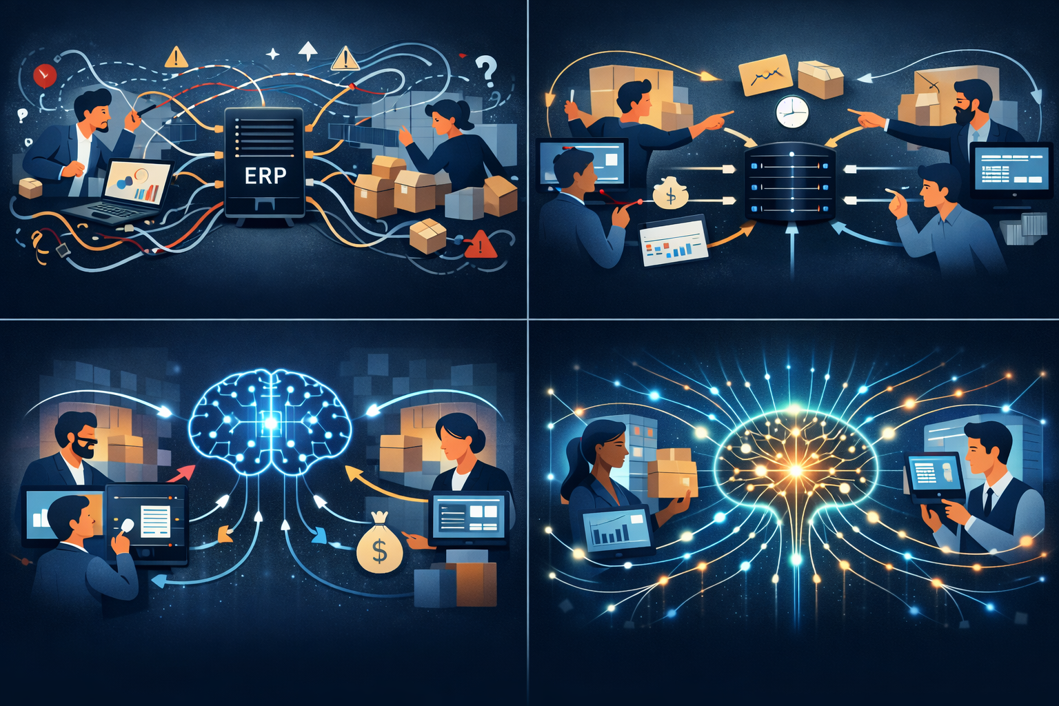 Giải pháp không phải chỉnh thêm tính năng, mà là quay lại thiết kế lại cách các bộ phận phối hợp, xác định rõ điểm chốt dữ liệu và trách nhiệm. Khi cấu trúc vận hành được làm rõ, ERP bắt đầu phát huy vai trò như một “hệ thần kinh” thay vì một “bảng nhập liệu”.