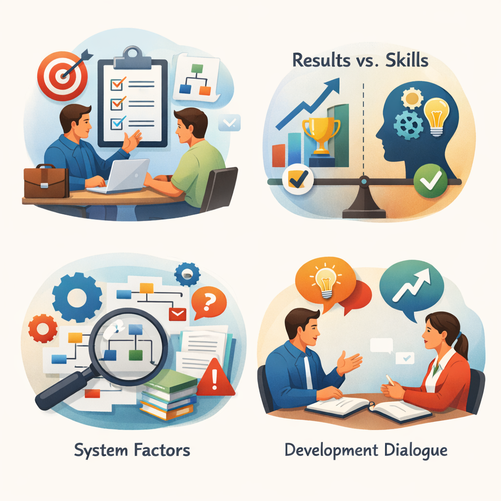 Thứ ba, đưa yếu tố hệ thống vào đánh giá. Thay vì hỏi “ai làm chưa tốt”, quản lý cần đặt thêm câu hỏi: quy trình, nguồn lực, hay quyết định nào đã hỗ trợ hoặc cản trở kết quả đó. Điều này giúp review trở thành công cụ cải tiến, không phải phán xét.