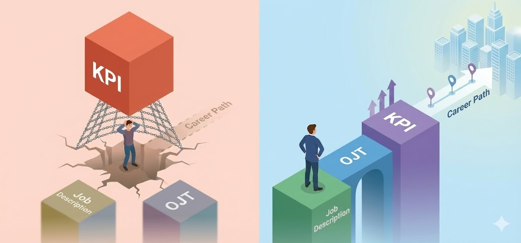 Vấn đề không nằm ở việc thiếu công cụ, mà nằm ở chỗ các mảnh ghép nền tảng này chưa bao giờ được đặt vào cùng một bức tranh. Khi Job Description, KPI, OJT và Career Path bị tách rời, tổ chức mất đi logic vận hành nội tại của chính mình.