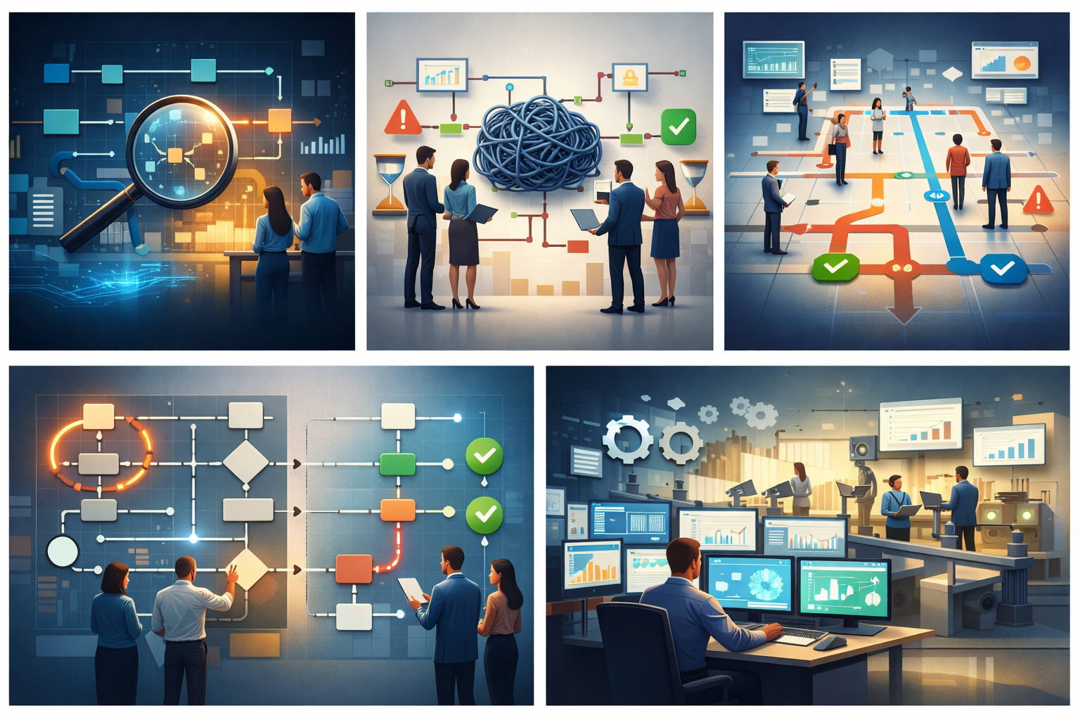 Không nên bắt đầu từ quy trình đẹp hay dễ, mà từ những luồng thường gây tranh cãi: xử lý đơn hàng chậm, phê duyệt kéo dài, hoàn tiền nhiều vòng, hoặc giao việc chồng chéo giữa phòng ban.
