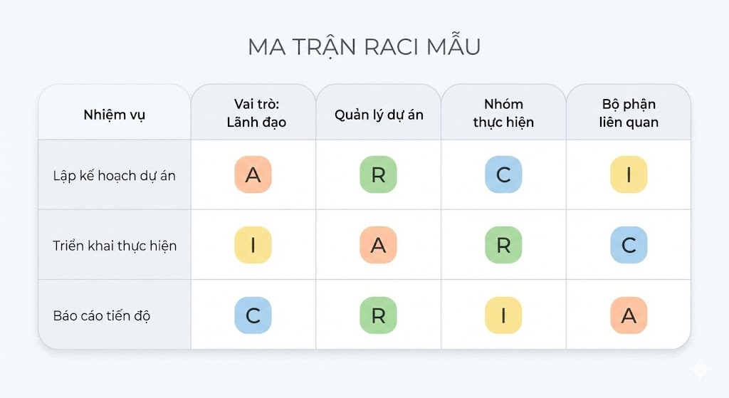 RACI là viết tắt của 4 vai trò chính trong một nhiệm vụ hoặc quy trình: